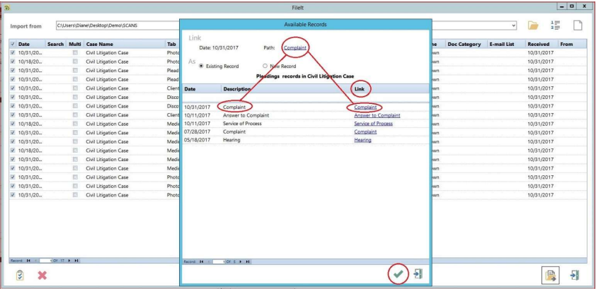 Often, legal documents like signed contracts or court-stamped pleadings need to be linked to existing entries. FileIT supports "Additional" or "More Links" fields for a variety of categories, including Discovery, Experts, Medical Records, and Pleadings. When tagging these files, the system prompts you to identify the original entry to ensure the new file is correctly lined up with the existing record.